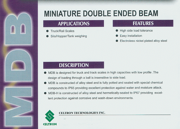 Celtron MDB雙剪切梁式稱(chēng)重傳感器專(zhuān)為卡車(chē)和鐵路的低配置高容量規(guī)模設(shè)計(jì)。在裝載過(guò)程中不易受負(fù)載影響。