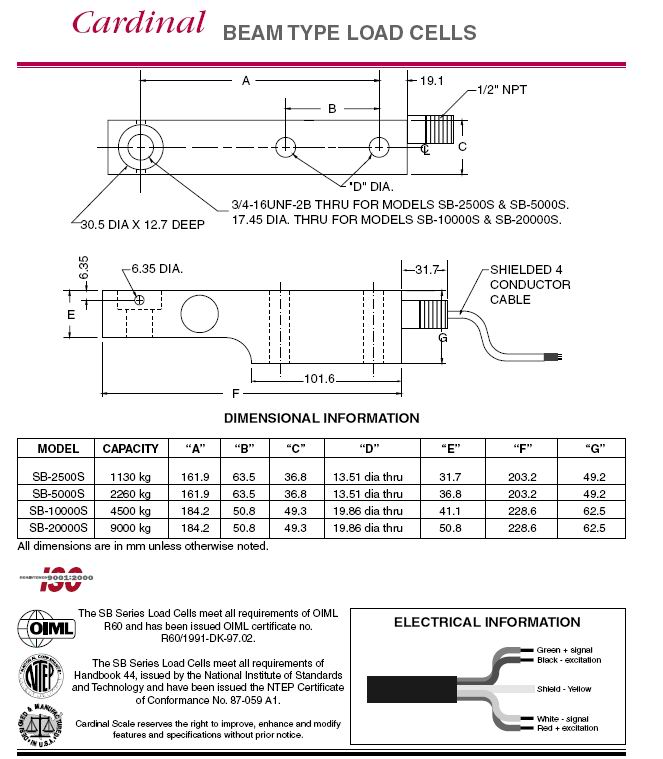 Cardinal SB 稱(chēng)重傳感器(load cells) 所有型號(hào): SB-2500S 1130KG SB-5000S 2260KG SB-10000S 4500KG SB-20000S 9000KG |