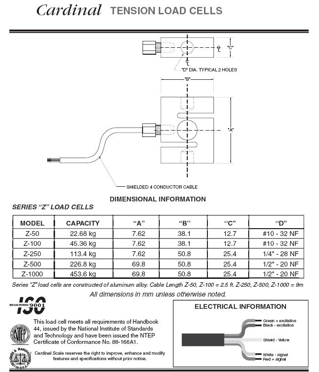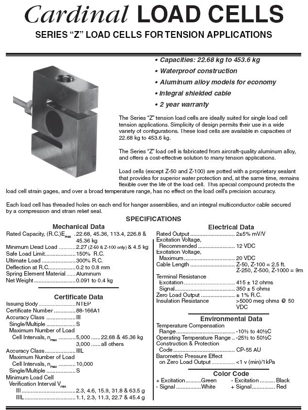 Cardinal Z S型稱(chēng)重傳感器(load cells)