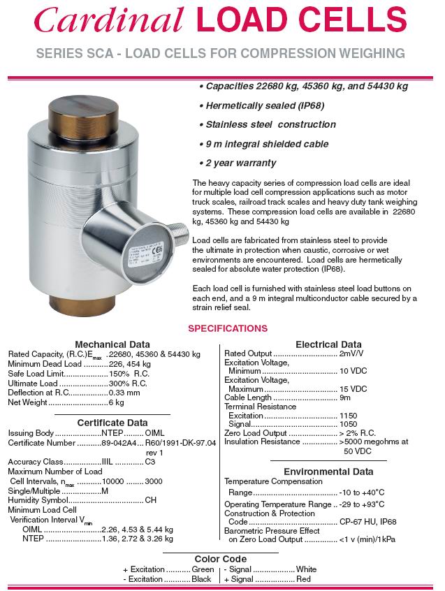 Cardinal SCA 柱式稱重傳感器(load cells)