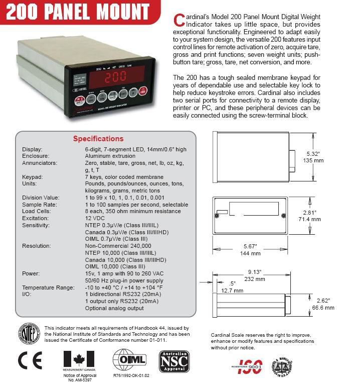 Cardinal 200 稱重顯示儀表(indicator) |