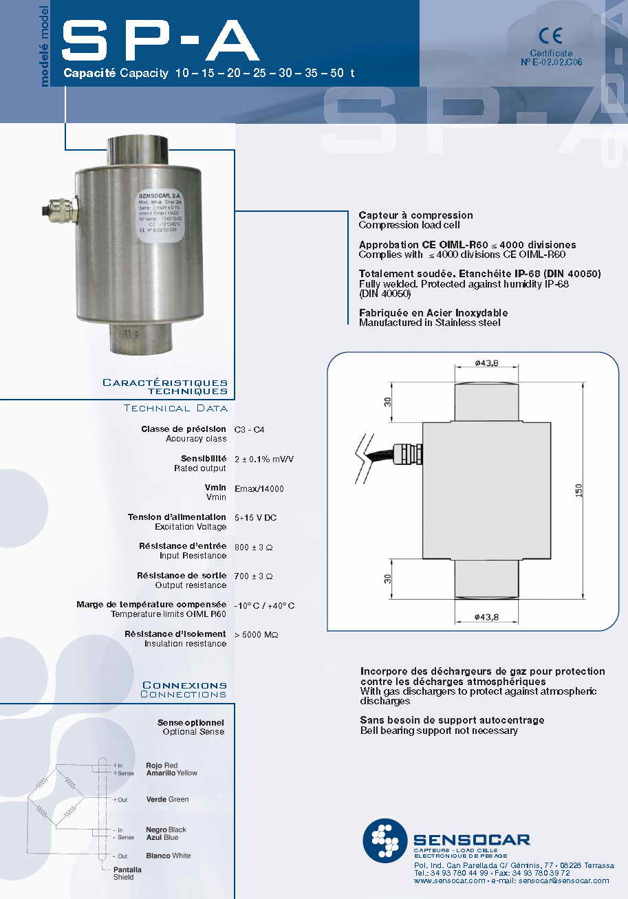 Sensocar SP-A 柱式稱(chēng)重傳感器(load cells)