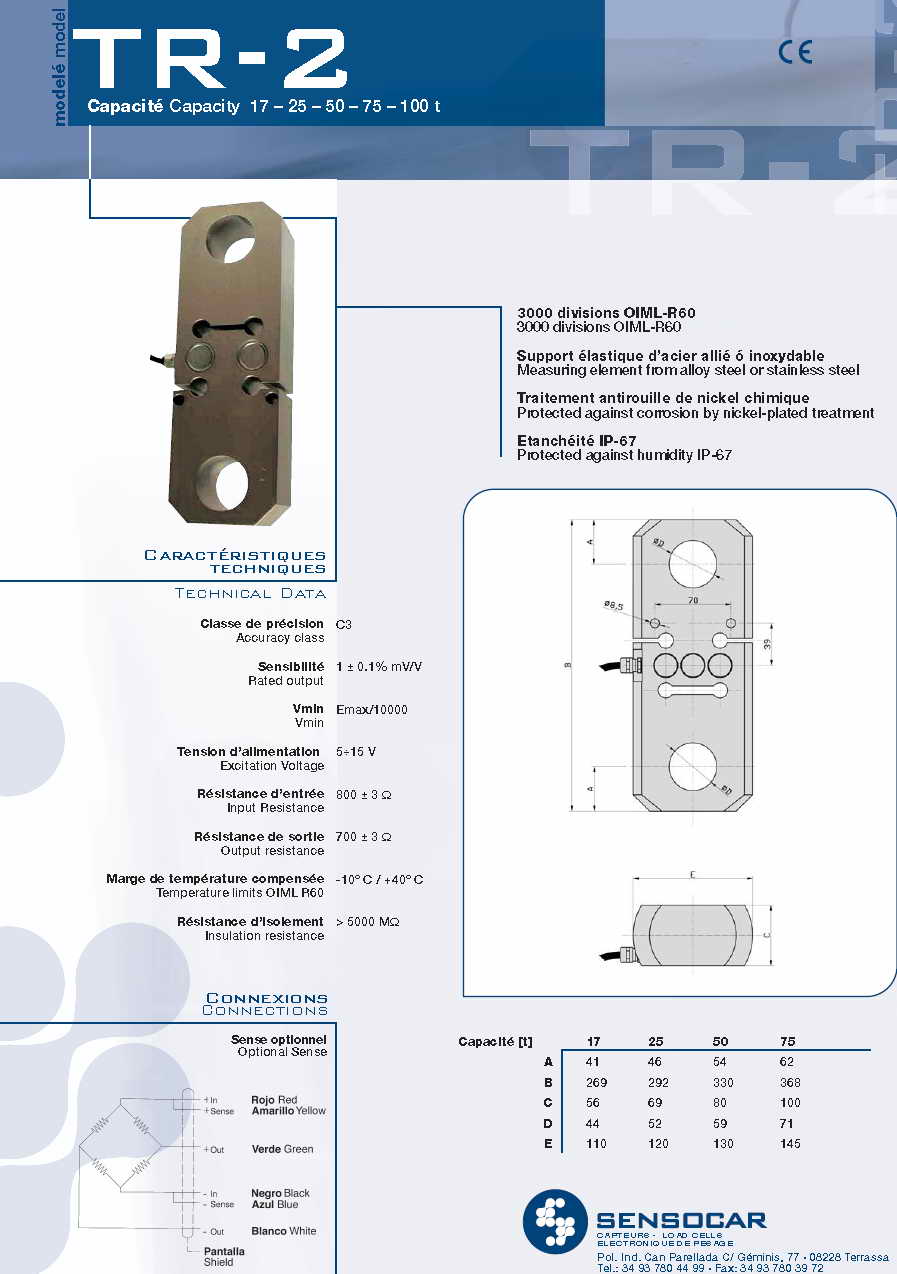 Sensocar TR-2 拉式稱重傳感器(load cells)