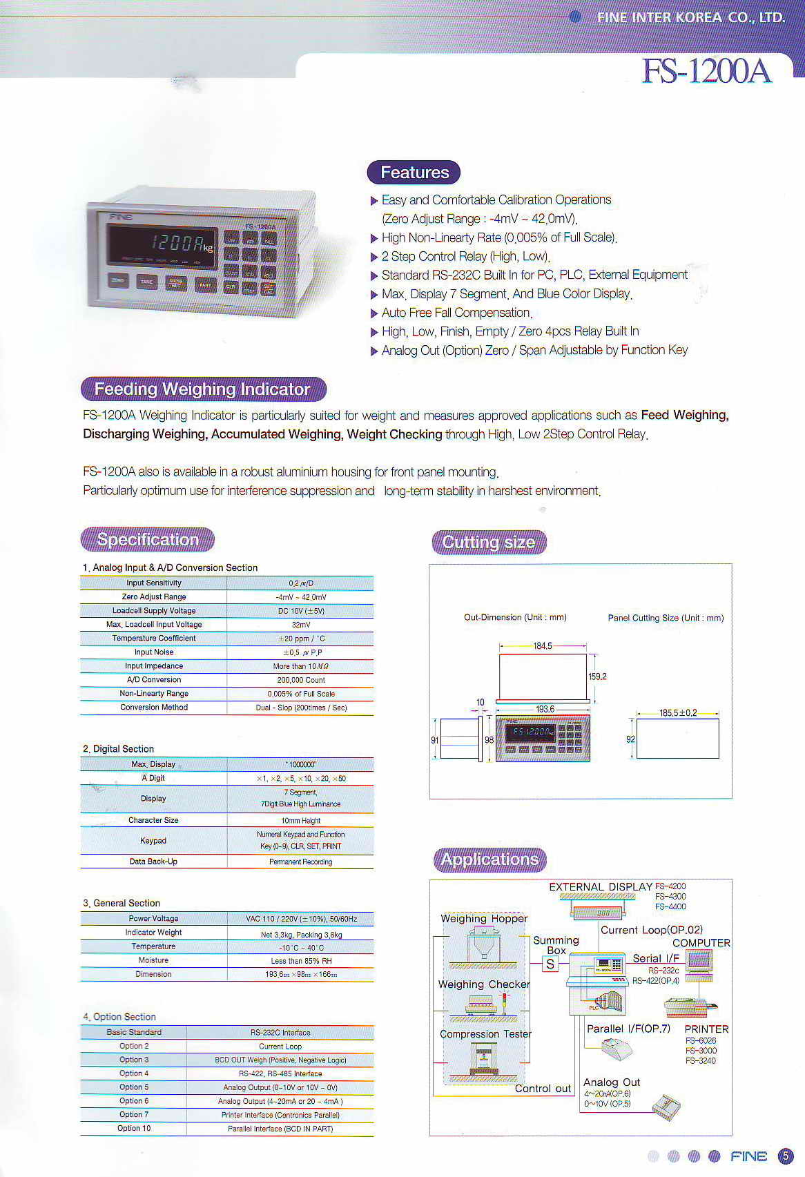 韓國Fine稱重顯示儀表,稱重顯示儀表FS-1200,顯示儀表FS-1200,FS-1200                          咨詢熱線:TEL:0755-86111857  FAX:0755-26738841 Q:2209800901 伍工