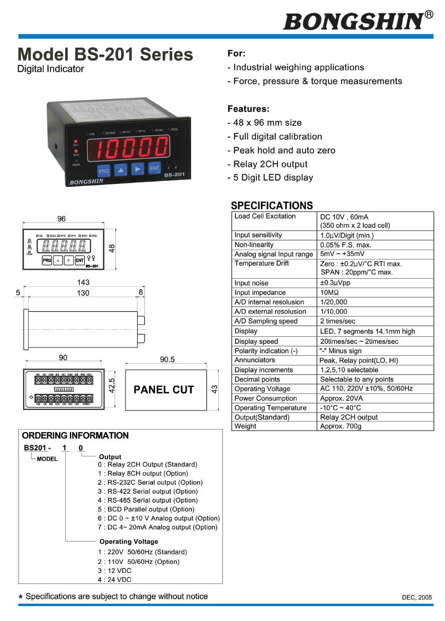 | 產(chǎn)品名稱:BS-201 稱重顯示儀表(digital indicator) |