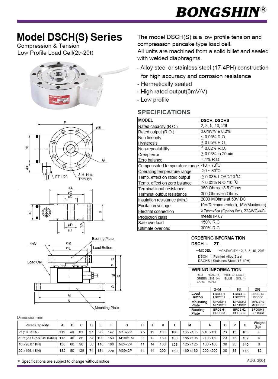 | 產(chǎn)品名稱:DSCH(S) 拉壓稱重傳感器(load cell) |