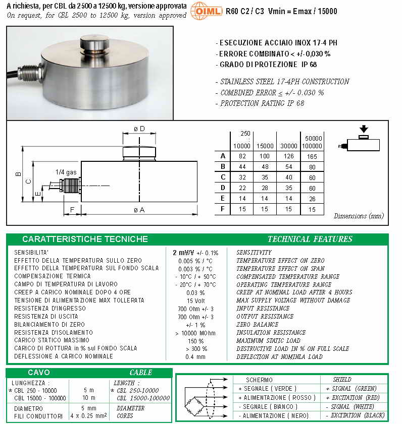 | 產(chǎn)品名稱:Laumas CBL 壓式稱重傳感器(load cells) |