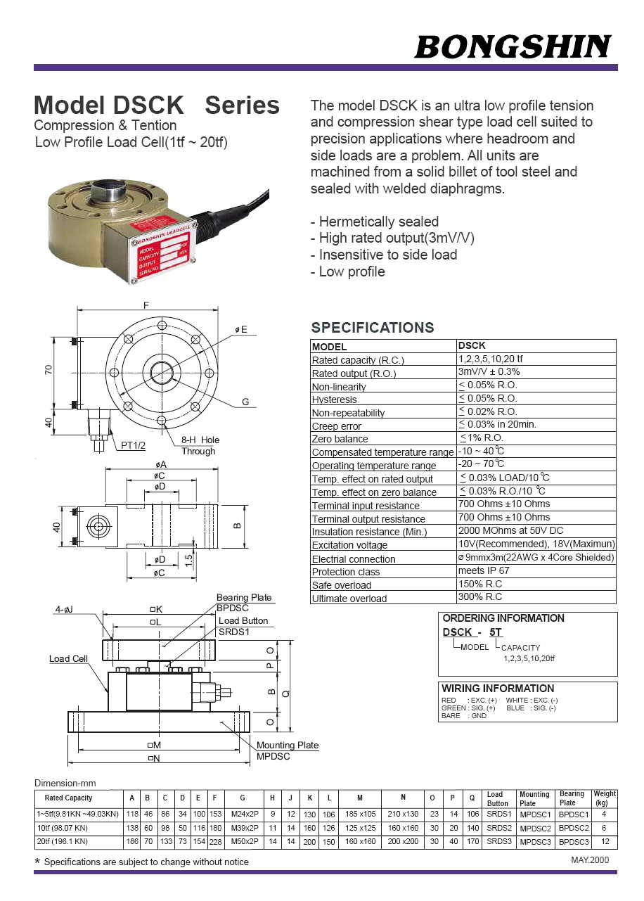| 產(chǎn)品名稱(chēng):DSCK 拉壓式稱(chēng)重傳感器(load cell) |