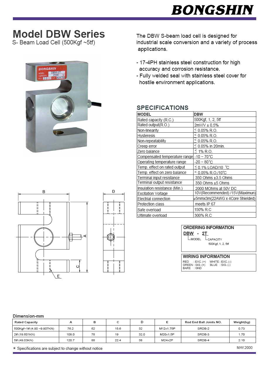 DBW S型稱重傳感器(load cell)