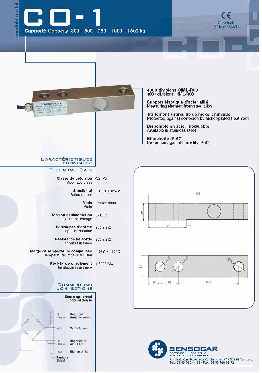 | 產(chǎn)品名稱:Sensocar CO-1 梁式稱重傳感器(load cells) |