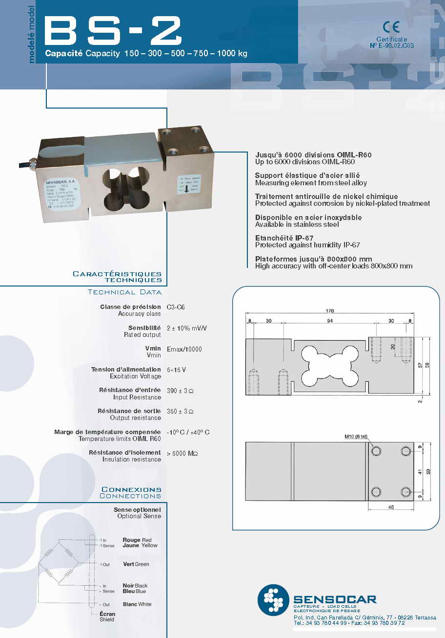 | 產(chǎn)品名稱:Sensocar BS-2 單點式稱重傳感器(load cells) |