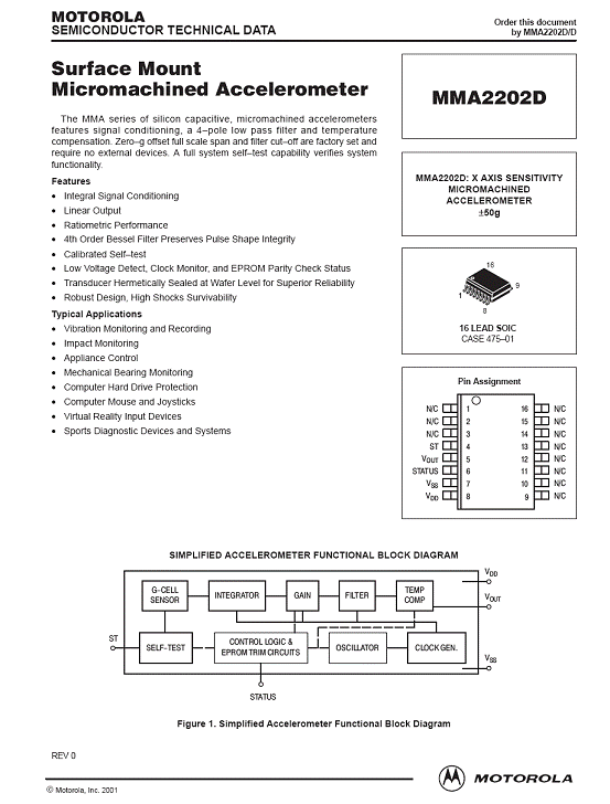 MMA2202D 加速度傳感器(Accelerometer)