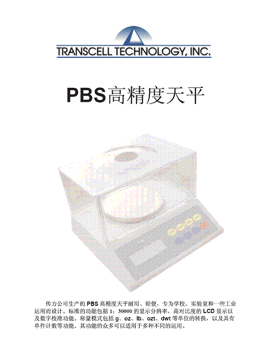 | 產(chǎn)品名稱:Transcell PBS 高精度天平(scales) |