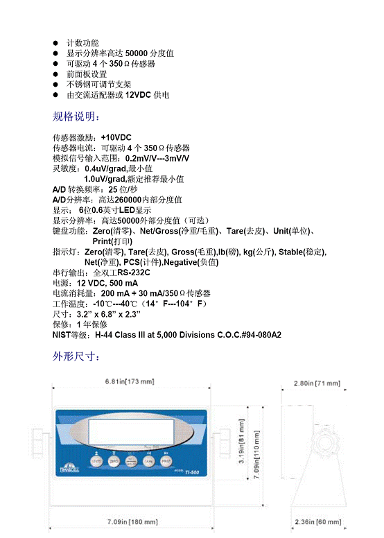 美國 transcell 稱重傳感器及儀表