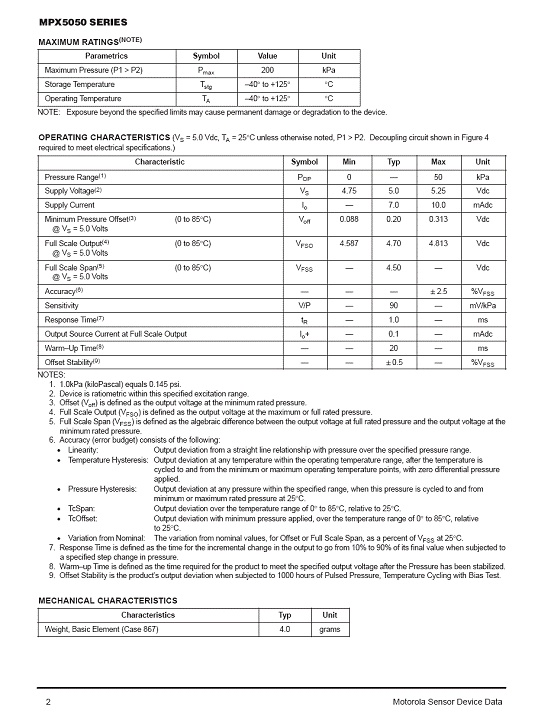 MPX5050 氣壓傳感器(sensor)