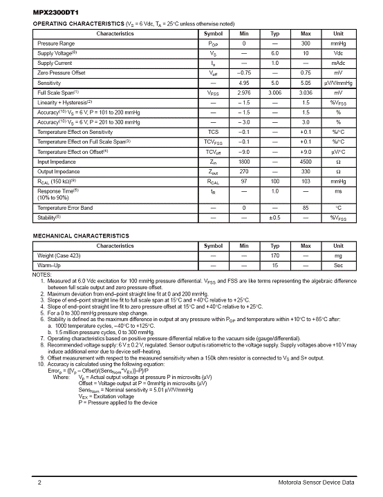 MPX2300DT1 氣壓傳感器(sensor)