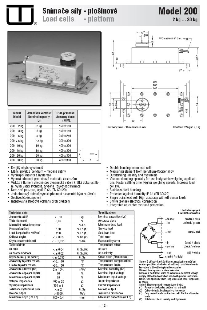 西班牙UTILCELL稱重傳感器,稱重傳感器MOD200-15kg, 傳感器MOD200-15kg,MOD200-15kg