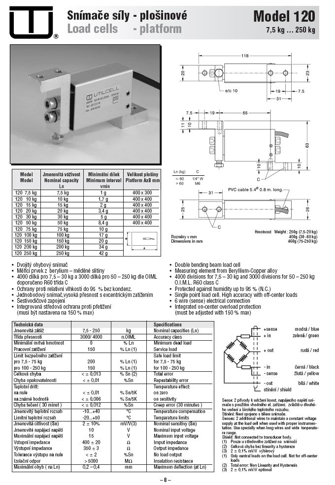 7.5–30kg:4000 divisions O.I.M.L. R60 class C,50–250kg:3000 divisions O.I.M.L. R60 class C