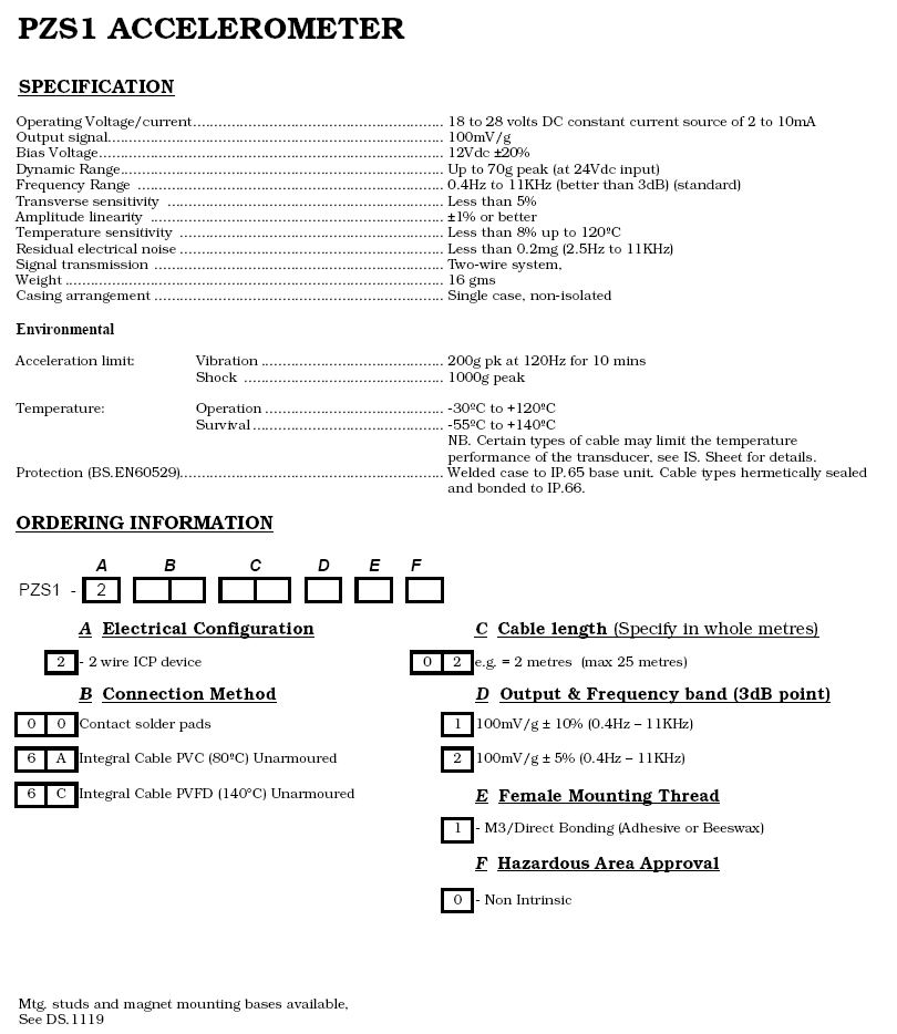 PZS1 / PZS2 / PZS3 / PZS4 / PZS5 Accelerometer